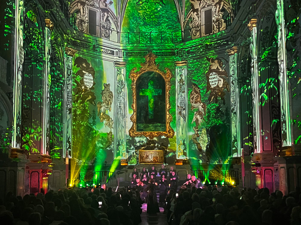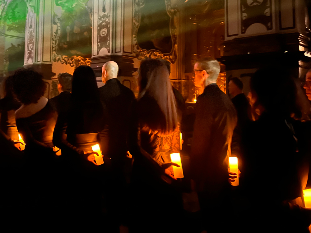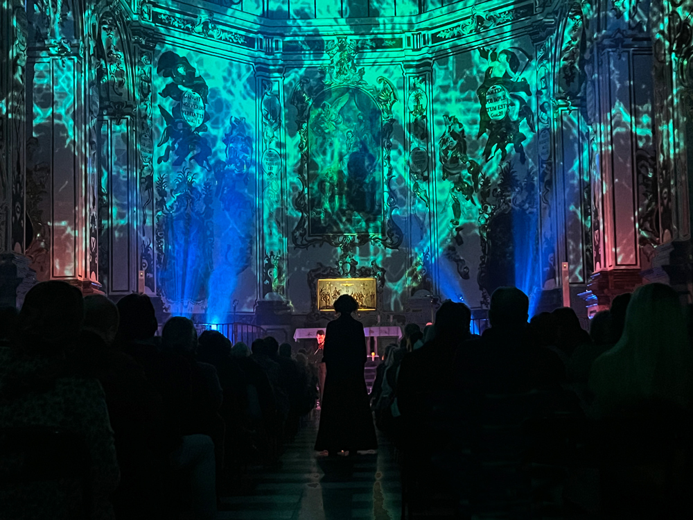 La hermosa Iglesia de San Juan de la Cruz, con su impresionante dinamismo Rococó -heredero directo del Barroco centroeuropeo—, acoge una de las producciones más impactantes de la temporada.