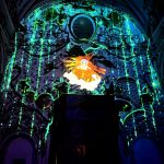 El espectacular relieve —una compleja composición escultórica cargada de mística y simbolismo— se convierte en un lienzo vivo gracias a una cuidada proyección de efectos lumínicos sincronizados con las notas y compases de grandes obras maestras de la música barroca. Cada fragmento musical acompaña y revela, de forma poética y sensorial, los distintos elementos iconográficos del conjunto, sobre un concepto contemporáneo del continuum barroco.